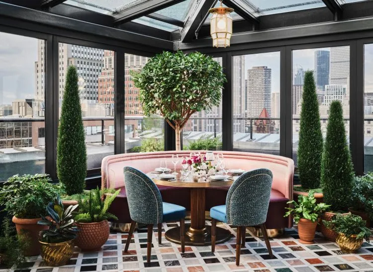 Perched atop The Newbury Boston, Contessa offers sweeping views over Back Bay and the Public Garden, with an elegant, glass-terraced dining room designed by Ken Fulk.
